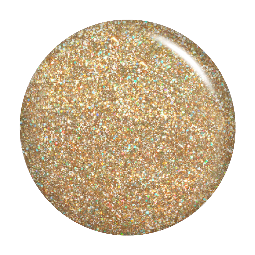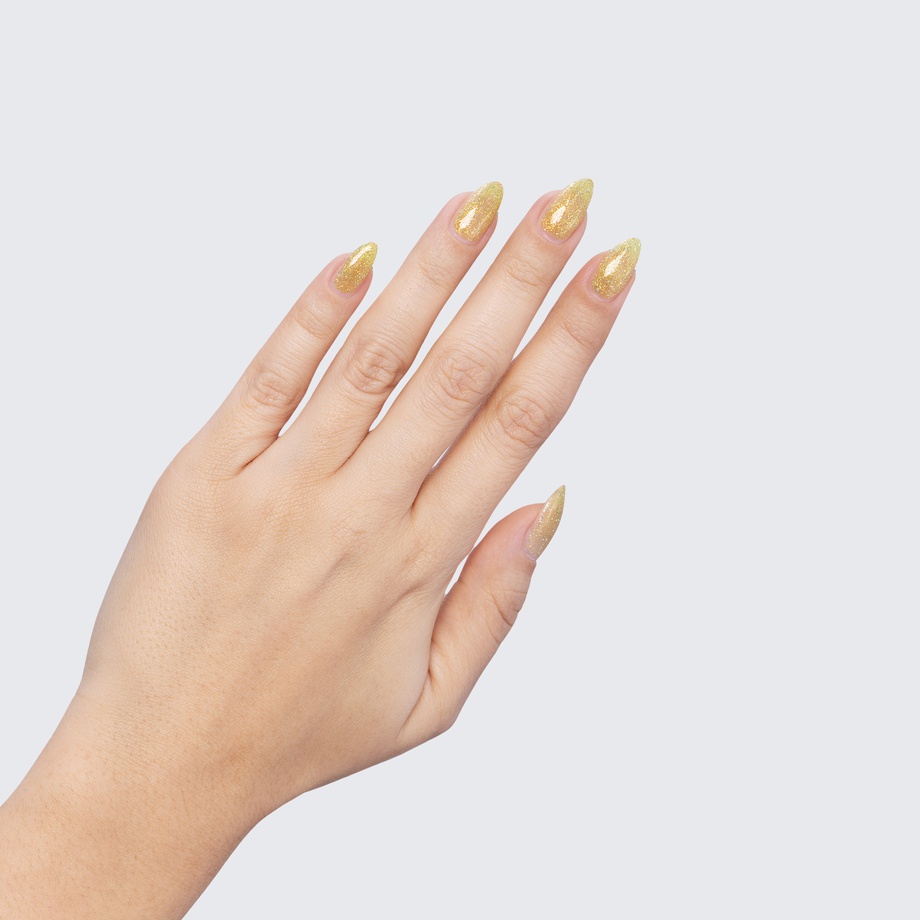 The gold, iridescent sparkle of this translucent polish is a treasure to behold.